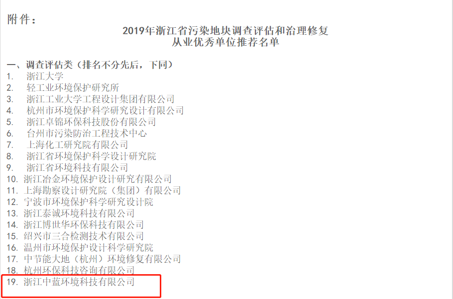 2020年度浙江省污染地塊調查評估和治理修復從業單位